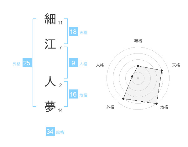 細江 人夢さんの天格は18画の4点!