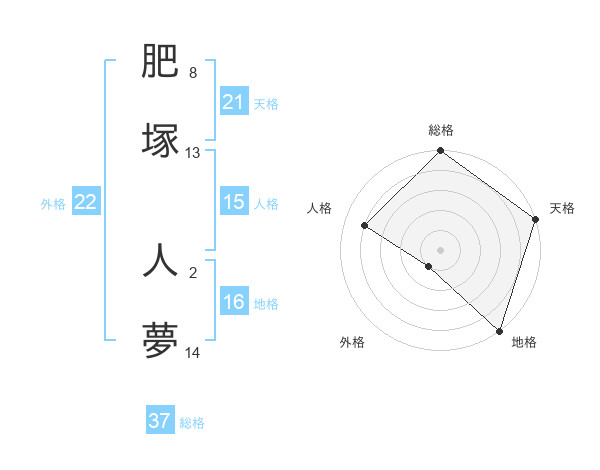 肥塚 人夢さんの総格は37画の5点!