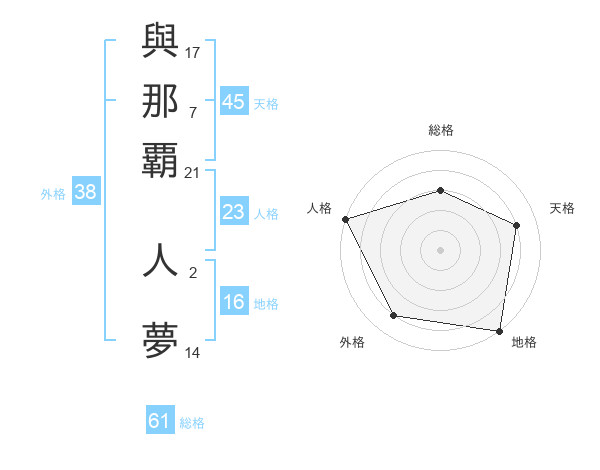 與那覇 人夢さんの総格は61画の3点!