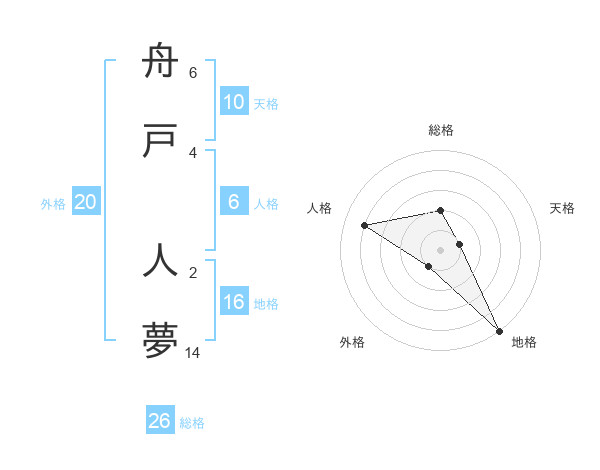 舟戸 人夢さんの総格は26画の2点!