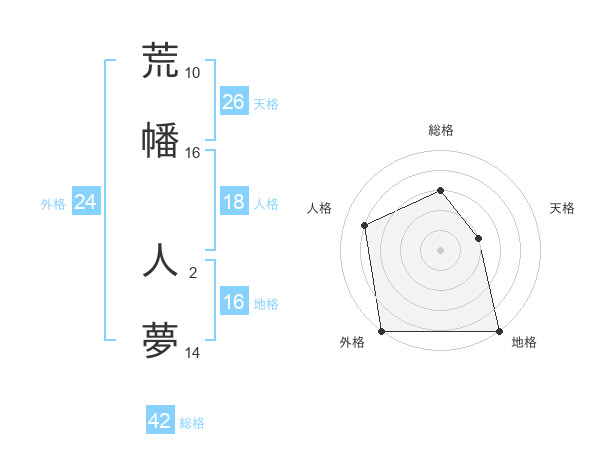 荒幡 人夢さんの総格は42画の3点!