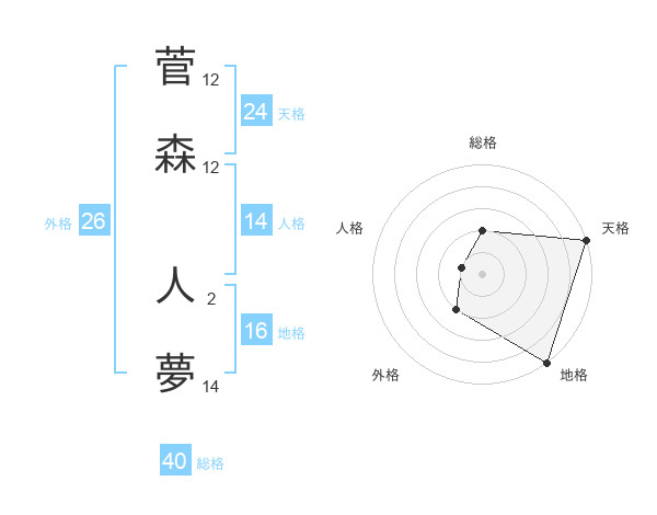 菅森 人夢さんを姓名の画数から五運を鑑定