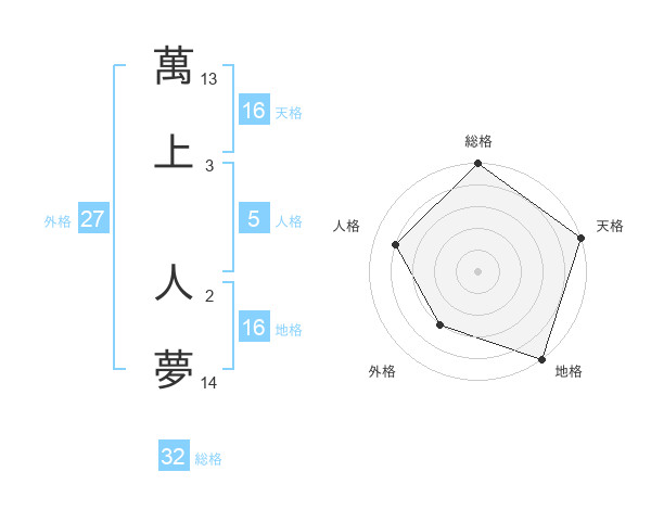 萬上 人夢さんの天格は16画の5点!