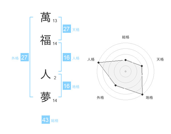 萬福 人夢さんの外格は27画の3点!