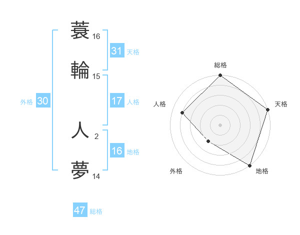 蓑輪 人夢さんの外格は30画の2点!