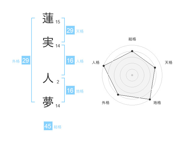 蓮実 人夢さんを姓名の画数から五運を鑑定