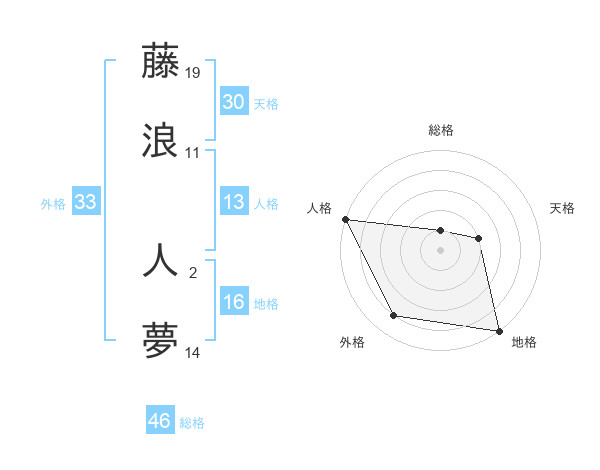 藤浪 人夢さんの総格は46画の1点!