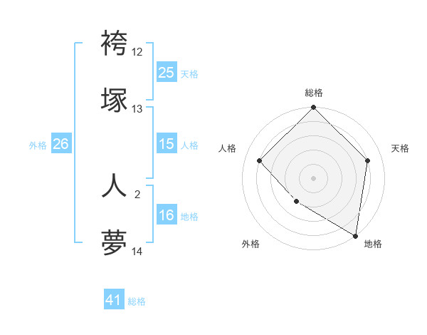 袴塚 人夢さんの総格は41画の5点!
