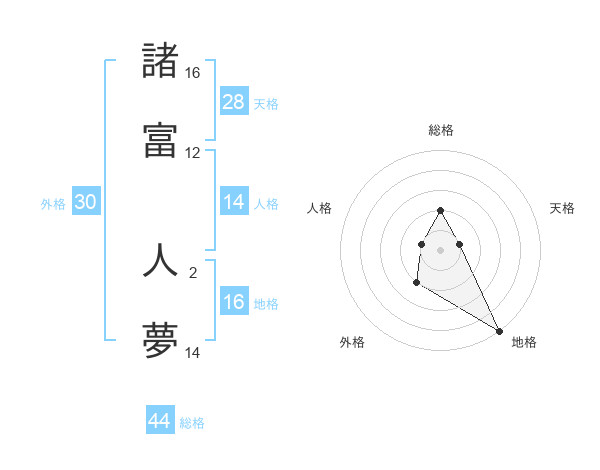 諸富 人夢さんの総格は44画の2点!