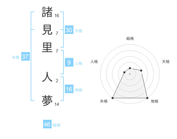 諸見里 人夢さんの外格は37画の5点!