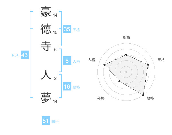 豪徳寺 人夢さんを姓名の画数から五運を鑑定