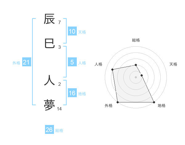 辰巳 人夢さんを姓名の画数から五運を鑑定