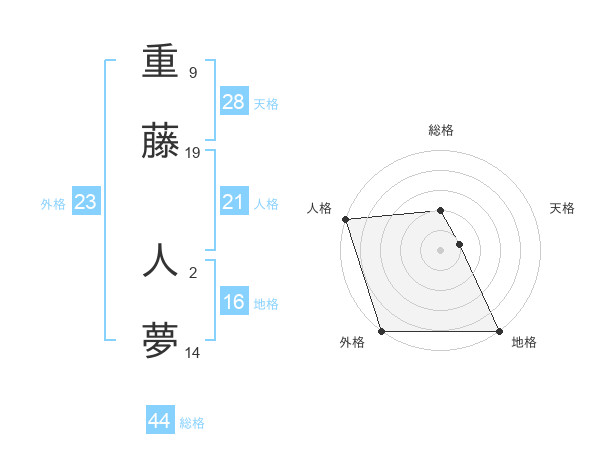 重藤 人夢さんの総格は44画の2点!