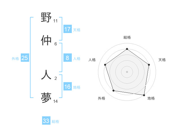 野仲 人夢さんの総格は33画の4点!