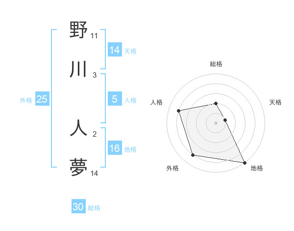 野川 人夢さんの外格は25画の4点!