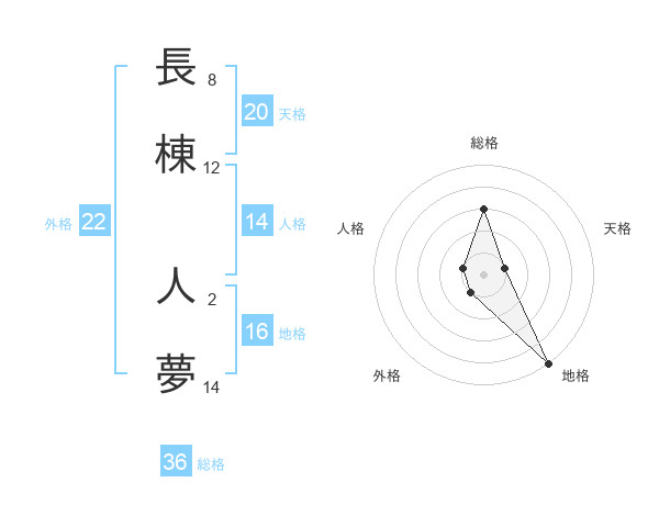 長棟 人夢さんを姓名の画数から五運を鑑定
