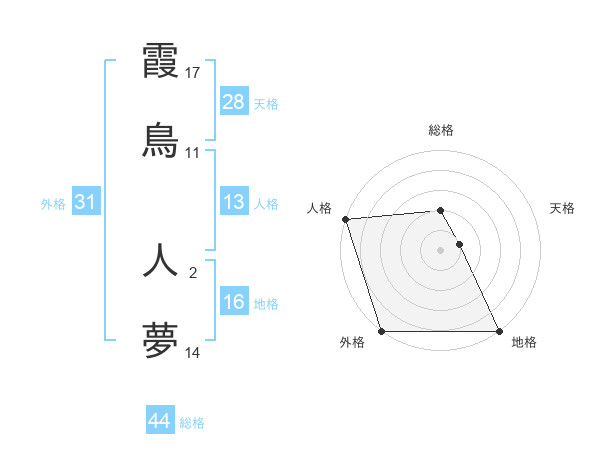 霞鳥 人夢さんを姓名の画数から五運を鑑定