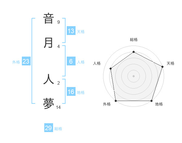 音月 人夢さんの外格は23画の5点!