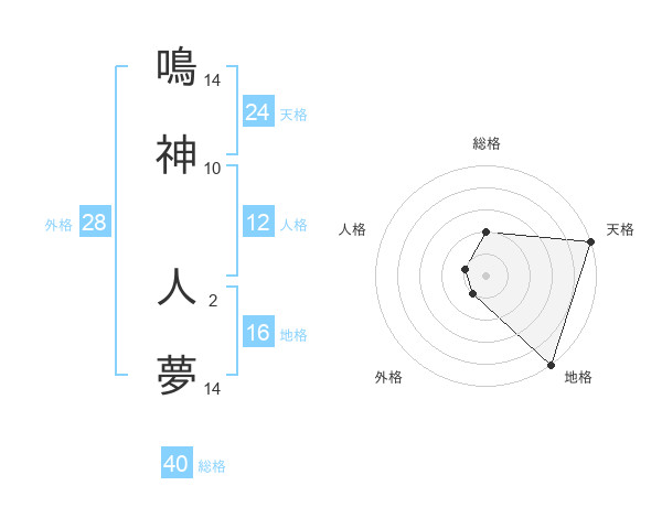 鳴神 人夢さんの外格は28画の1点!