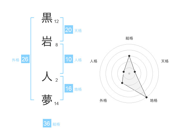 黒岩 人夢さんを姓名の画数から五運を鑑定