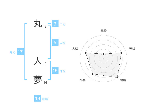 丸 人夢さんの地格は16画の5点!