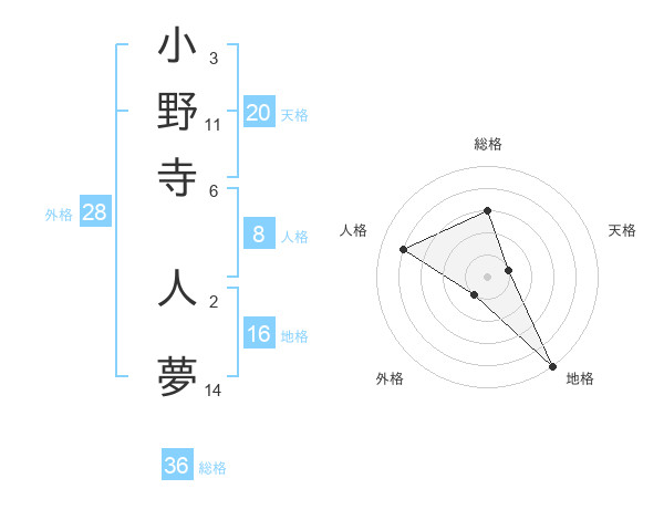 小野寺 人夢さんを姓名の画数から五運を鑑定