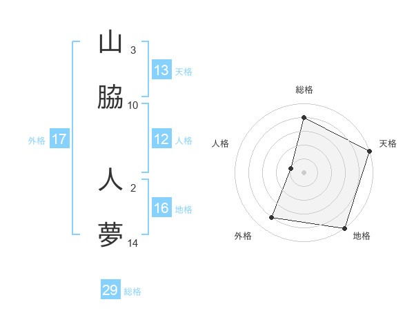 山脇 人夢さんを姓名の画数から五運を鑑定