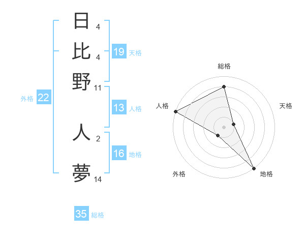 日比野 人夢さんの外格は22画の1点!