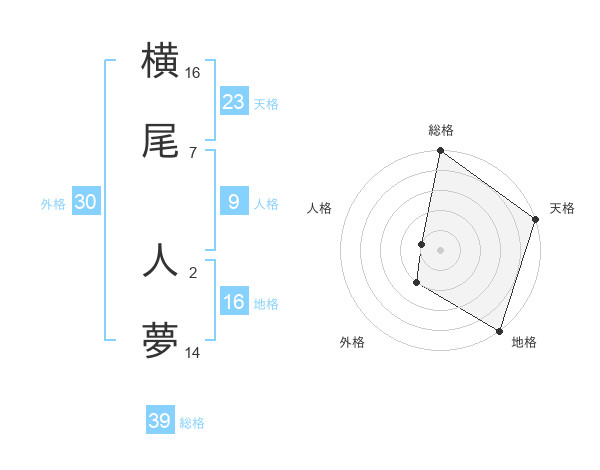 横尾 人夢さんを姓名の画数から五運を鑑定