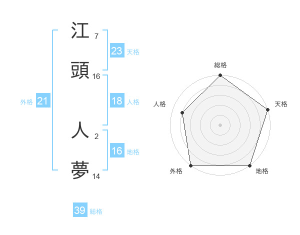 江頭 人夢さんを姓名の画数から五運を鑑定