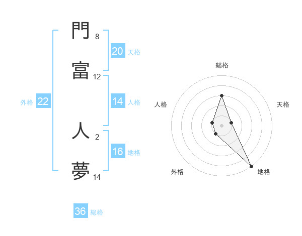 家系が持つ宿命的な運勢を表します。祖先から受け継いだ苗字ですので自分の力が及びません。家柄を象徴します。