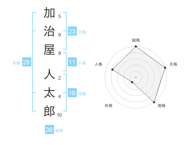 加治屋 人太郎さんを姓名の画数から五運を鑑定