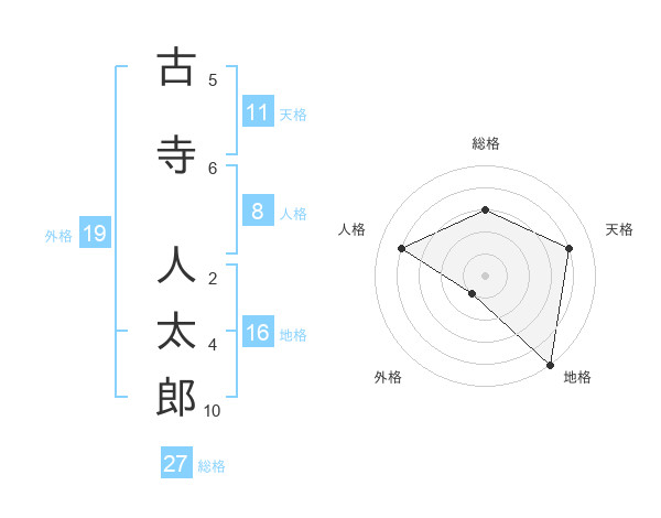 古寺 人太郎さんを姓名の画数から五運を鑑定