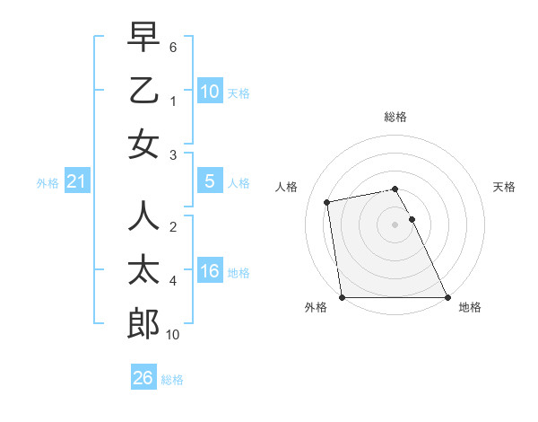 早乙女 人太郎さんを姓名の画数から五運を鑑定