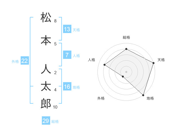 松本 人太郎さんを姓名の画数から五運を鑑定