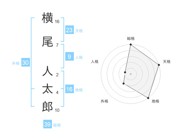 横尾 人太郎さんの総格は39画の5点!