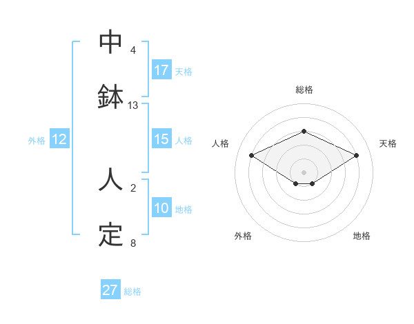 中鉢 人定さんの天格は17画の4点!