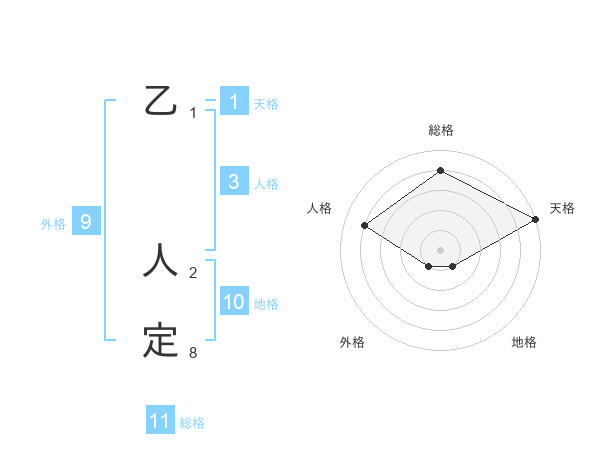 乙 人定さんの総格は11画の4点!