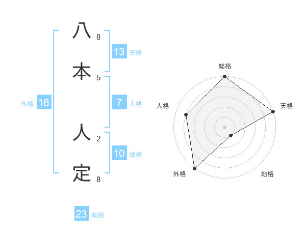 八本 人定さんの天格は13画の5点!