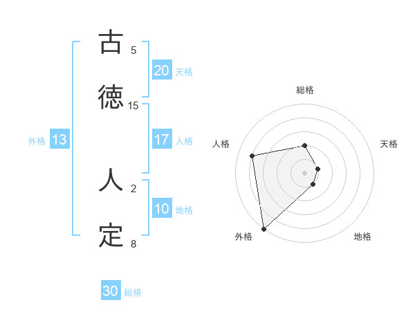 古徳 人定さんの外格は13画の5点!