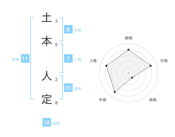 土本 人定さんの天格は8画の4点!