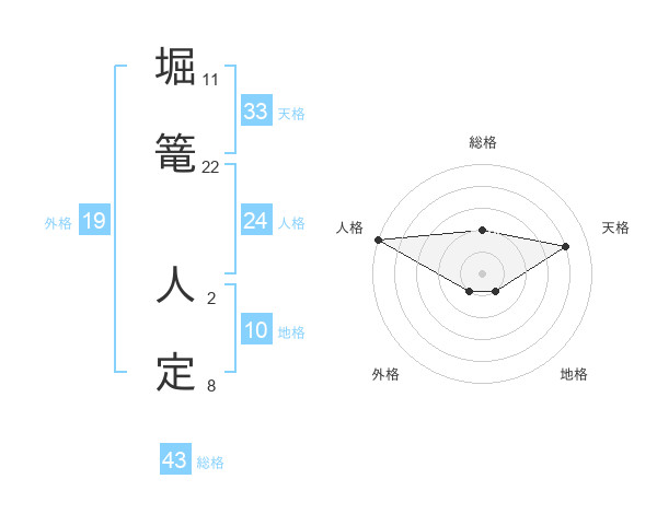 堀篭 人定さんの総格は43画の2点!