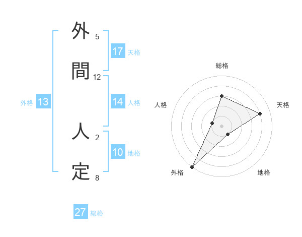 外間 人定さんの外格は13画の5点!