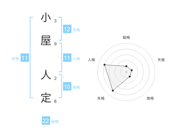 小屋 人定さんの総格は22画の1点!