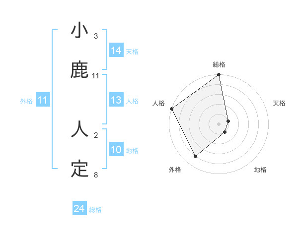 小鹿 人定さんを姓名の画数から五運を鑑定