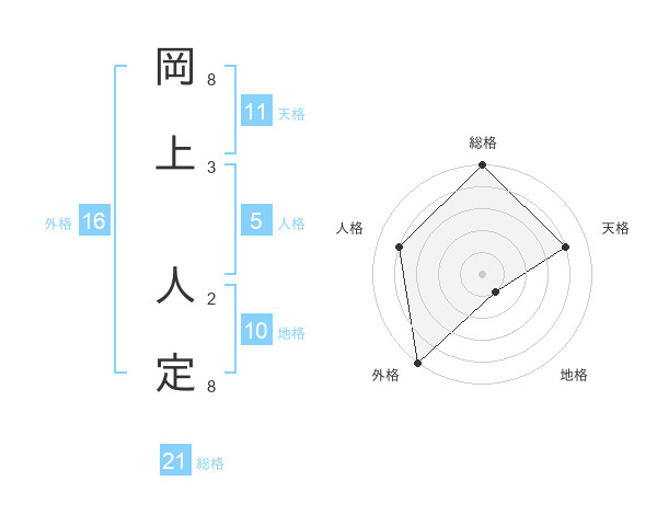 岡上 人定さんの総格は21画の5点!