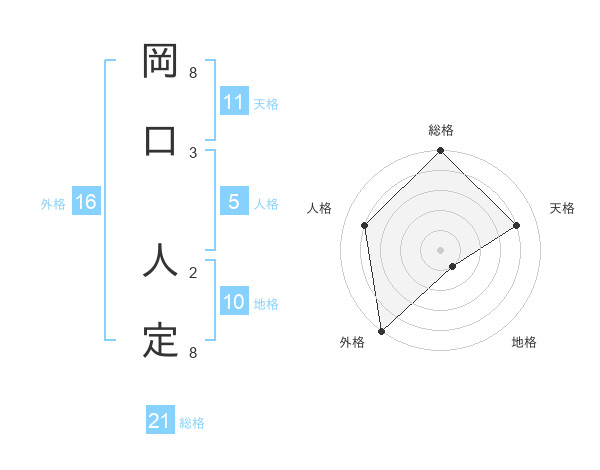 岡口 人定さんの総格は21画の5点!