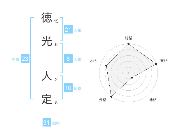 徳光 人定さんの天格は21画の5点!