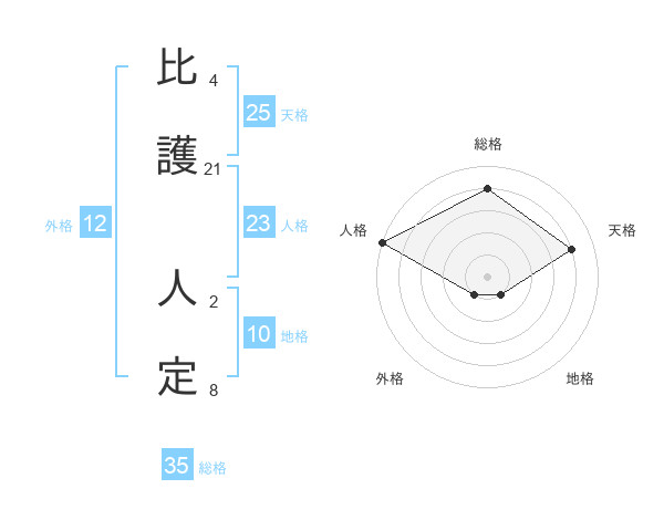比護 人定さんの総格は35画の4点!