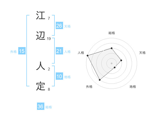 江辺 人定さんの天格は26画の2点!